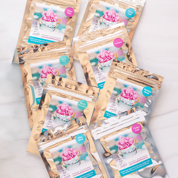 Each box contains 8 different tea pouches (2 sachets/pouch). Select from options below, or choose any 8 samples you’d like: