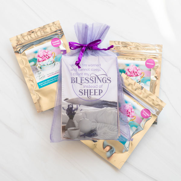 - 3 sample size tea pouches (2 sachets/pouch) of our best selling herbal teas – designed to help you relax, unwind, and prepare for a restorative sleep